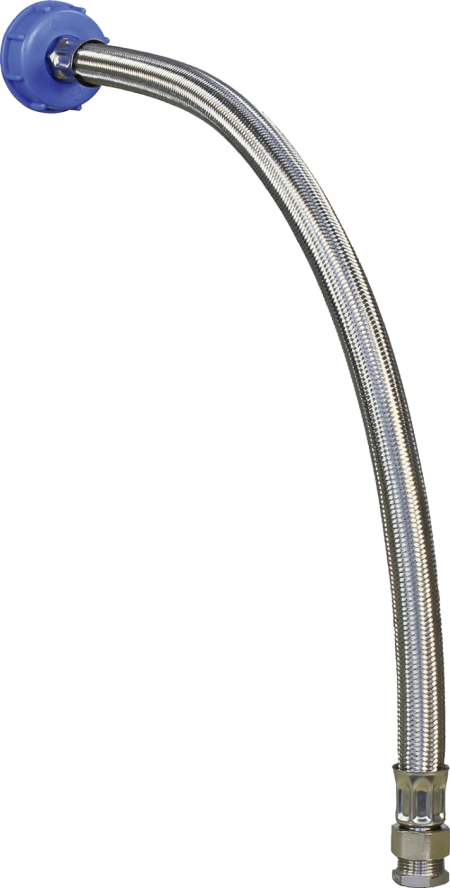 aansluiting drinkbak 1/2” bestaat uit reduceer adapter stuk S60x6mm op 3/4" buitendraad 70 cm gepanserde slang 3/4" binnendraad, Recht verloopstuk 3/4" buitendraad op 1/2" binnendraad