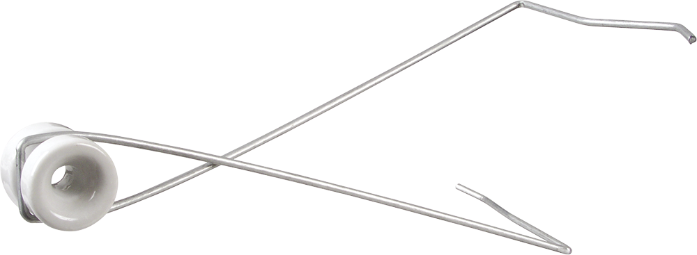 Porseleinen isolator met afstandsbevestiging om in de rasterdraden te hangen of in de paal in te spijkeren; lengte 300 mm