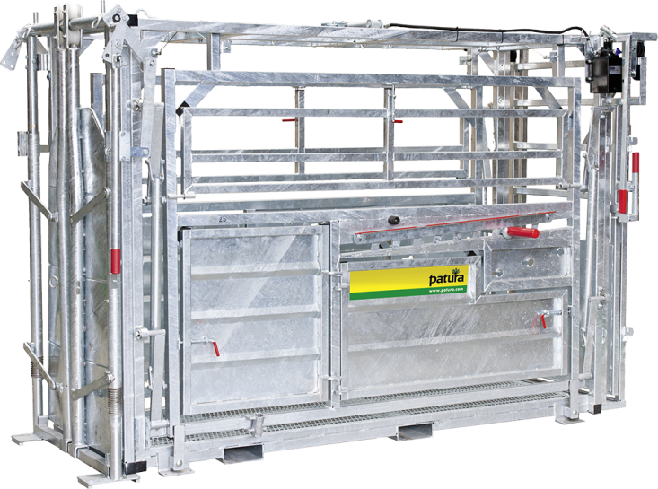Zoals A8000, maar links met een speciale deurindeling voor keizersneden en andere behandelingen, links 5 zijdeuren die geopend kunnen worden, rechts 3 zijdeuren, optimale toegang tot het buikgedeelte van het dier, klauwverzorging nog steeds mogelijk