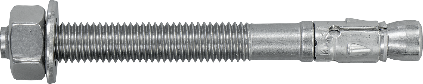 Voor montage (zonder pluggen) van de aanschroefdelen op beton met het hoogste belastingvermogen: gat boren – stof uit boorgat verwijderen - anker inslaan – moer aandraaien