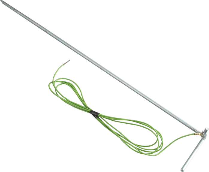 Extra aardpen speciaal voor kleine schrikdraadapparaten op batterij; gegalvaniseerd, 0,65 m lang met handvat voor het gemakkelijk uittrekken en 3 m kabel met 3 mm penaansluiting