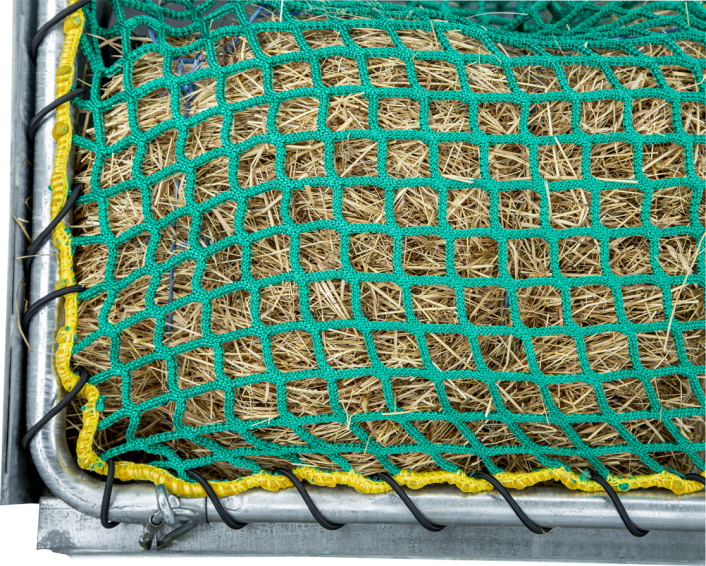 Frame voor voerbesparend net naarvierkante ruif met veiligheidspalissade voerhek, 8 voerplaatsen