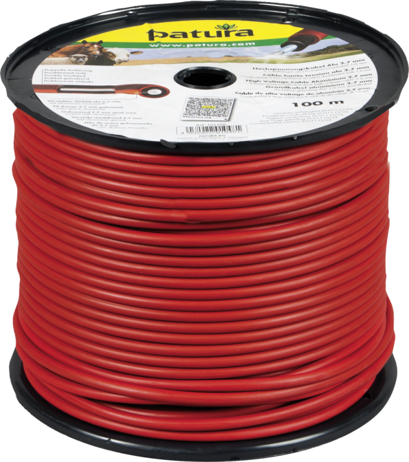Hoogspanningsvaste dubbel geïsoleerde, 1-aderige kabel met aluminium ommanteld 2,5 mm staaldraad; voor raster- en aardingstoevoerleidingen van meer dan 50 m met de kleinste verliezen; weerstand: 0,011 Ohm/m