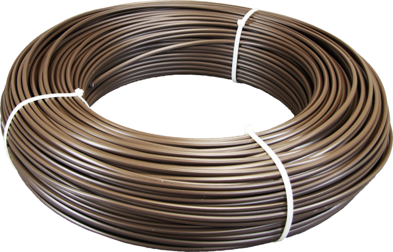 Met geleidend kunststof ommanteld 2,5 mm staaldraad, ca. 7 mm Ø; ideaal voor paardenrasters