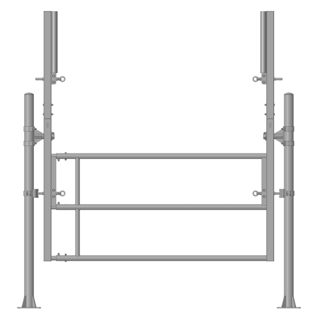 Het draaihek voor melkvee biedt de ongecompliceerde en snelle mogelijkheid om runderen in de stal te verplaatsen. Vooral als vaak moet worden gewisseld tussen twee ruimtes, bijv. uit de afkalfbox terug naar de groep, komen de voordelen van het draaihek tot hun recht. Na bediening van de grendelsloten kan het hek eenvoudig naar voren of naar achteren in de bovenste stand worden gedraaid. Vast geïnstalleerde contragewichten zorgen ervoor dat het hek comfortabel draait. Met behulp van zelfvergrendelende grendelsloten wordt het hek in de open stand vastgezet. De dieren kunnen nu onder de afscheiding door lopen en naar de aangrenzende ruimte worden gedreven.