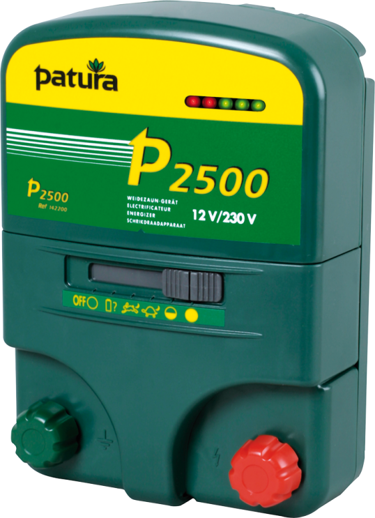 PATURA multifunctionele apparaat met de nieuwste, efficiënte apparaten technologie voor weideafrasteringen met normale gras begroeiing; 5-fase indicatie raster- en accu controle, 6-fasenschakelaar, bijna leegbeveiliging; incl. 230 V netvoeding, 12 V r.v.s. aansluitkabel en raster/aardingskabelset: ladingsenergie: 2,7 Joule