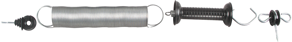 De praktische poort; uittrekbaar tot 5 m breedte; elk compleet met 1 poortgreep, veer, poortgreep- isolator, ringisolator