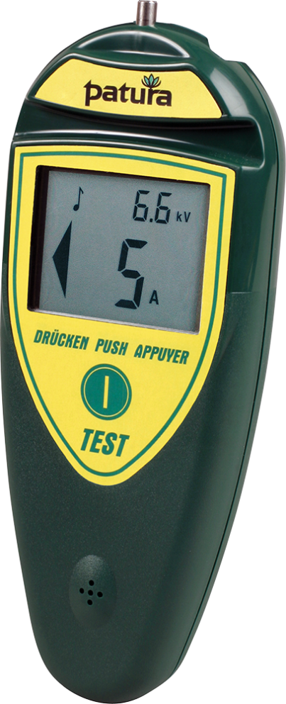 Digitale voltmeter met ampèremeter voor een exacte foutanalyse in de schrikdraadafrastering; verlichte LCD-indicatie; akoestisch signaal bij spanning op de afrastering; ideaal voor het gebruik op draden; beperkt geschikt voor kunststofdraden, niet geschikt voor geisoleerde kabels en lint