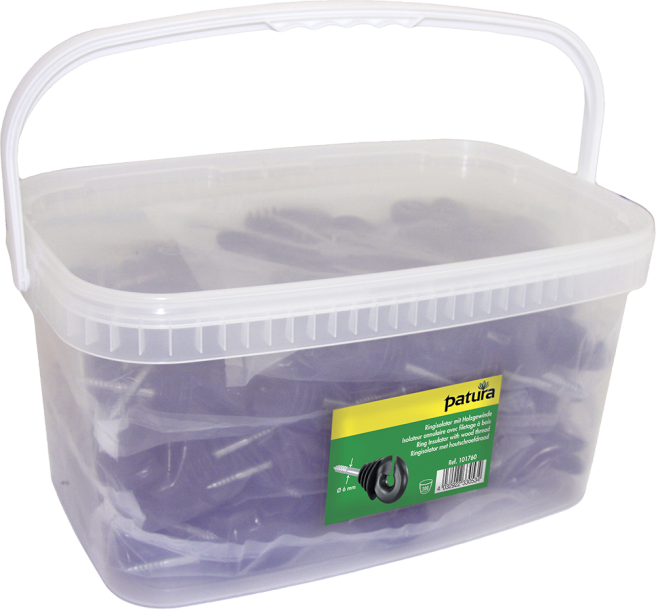 Ringisolator, met Houtdraad, 6mm schacht(Emmer met 250 stuk, incl.inschroefhulp)