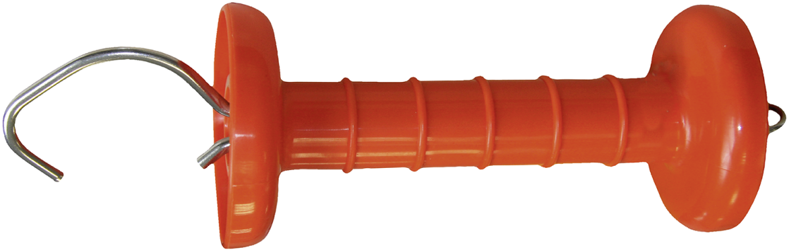 Speciale poortgreep, oranje, r.v.s. haaken r.v.s.veer,brede handbescherming