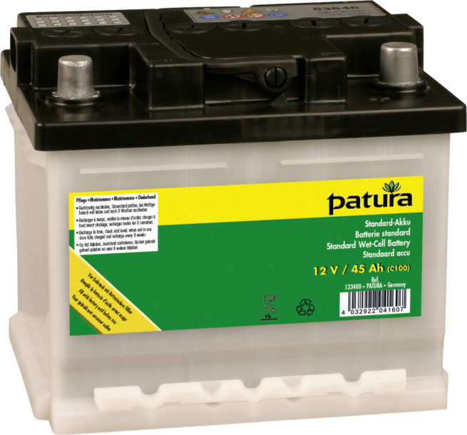 De goedkope batterij voor 12 Volt schrikdraadapparaten op accu; levering zonder batterijzuur, droog voorgeladen