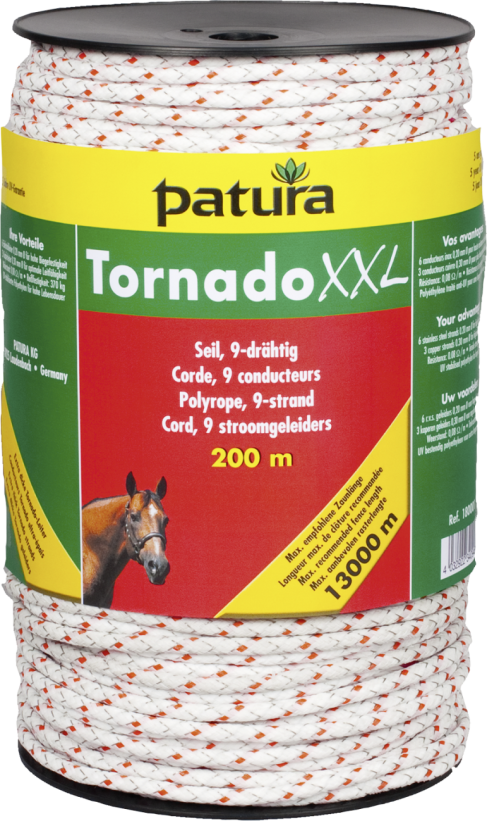 Tornado XXL cord, 200 m Rol6 rvs 0,20 mm, 3 koper 0,30 mm, wit-rood