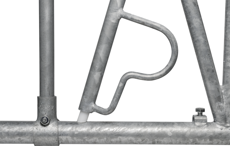 Sluit de ruimte tussen de vangbeugel en draagbuis veilig