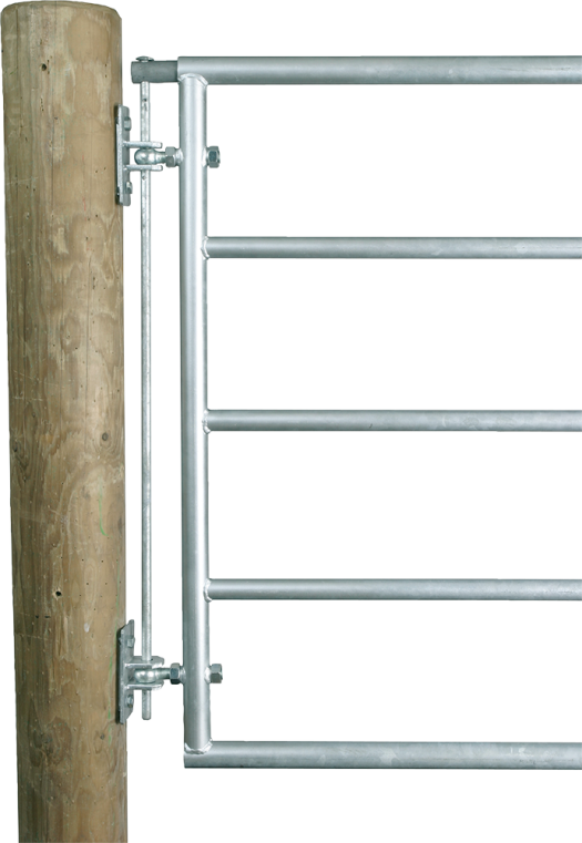 Voorkomt veilig bij het omhoog springen van dieren, speciaal van paarden,op weidepoorten, het vast komen zitten in de tussenruimte aan de kant van de ophanging; veiligheidsstang incl. verlengbuis en veiligheidspennen