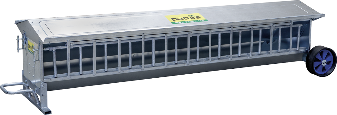 Voerautomaat voor lammeren, L=2,44 mrijbaar, Inhoud: ca. 240 l met dak, verzinkt