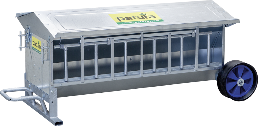Voerautomat voor lammeren, L=1,25 mrijbar, Inhoud: ca. 120 l met dak, verzinkt