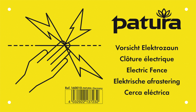 Conform de VDE (Vereniging van Duitse elektriciens) moeten waarschuwingsborden op goed zichtbare plaatsen aan de schrikdraadafrastering aangebracht worden in afstanden van 100 meter, bij het samenkomen met zijwegen, en op plaatsen waar geen schrikdraadafrastering vermoed wordt