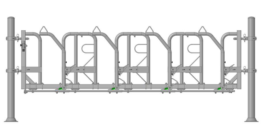 Het modulaire Zweedse voerhek voor rundvee maakt individuele aanpassingen mogelijk, afhankelijk van de toepassing. De halsbreedte komt overeen met de afstand die tijdens het eten tussen de 2 verticale buizen beschikbaar is voor het dier. In groepen met grotere kuddes of verschillende leeftijdsgroepen vereist de situatie vaak verschillende, verstelbare halsbreedtes en voederplaatsbreedtes. Bij het modulaire Zweedse voerhek wordt de halsbreedte ingesteld door de klemschroeven los te draaien. De steunbuizen kunnen zo nodig worden ingekort en hierdoor in vrijwel elke maat worden gemonteerd. Het voerhek is voorgemonteerd leverbaar in verschillende lengtes en 2 uitvoeringen, voor melkvee en stieren.